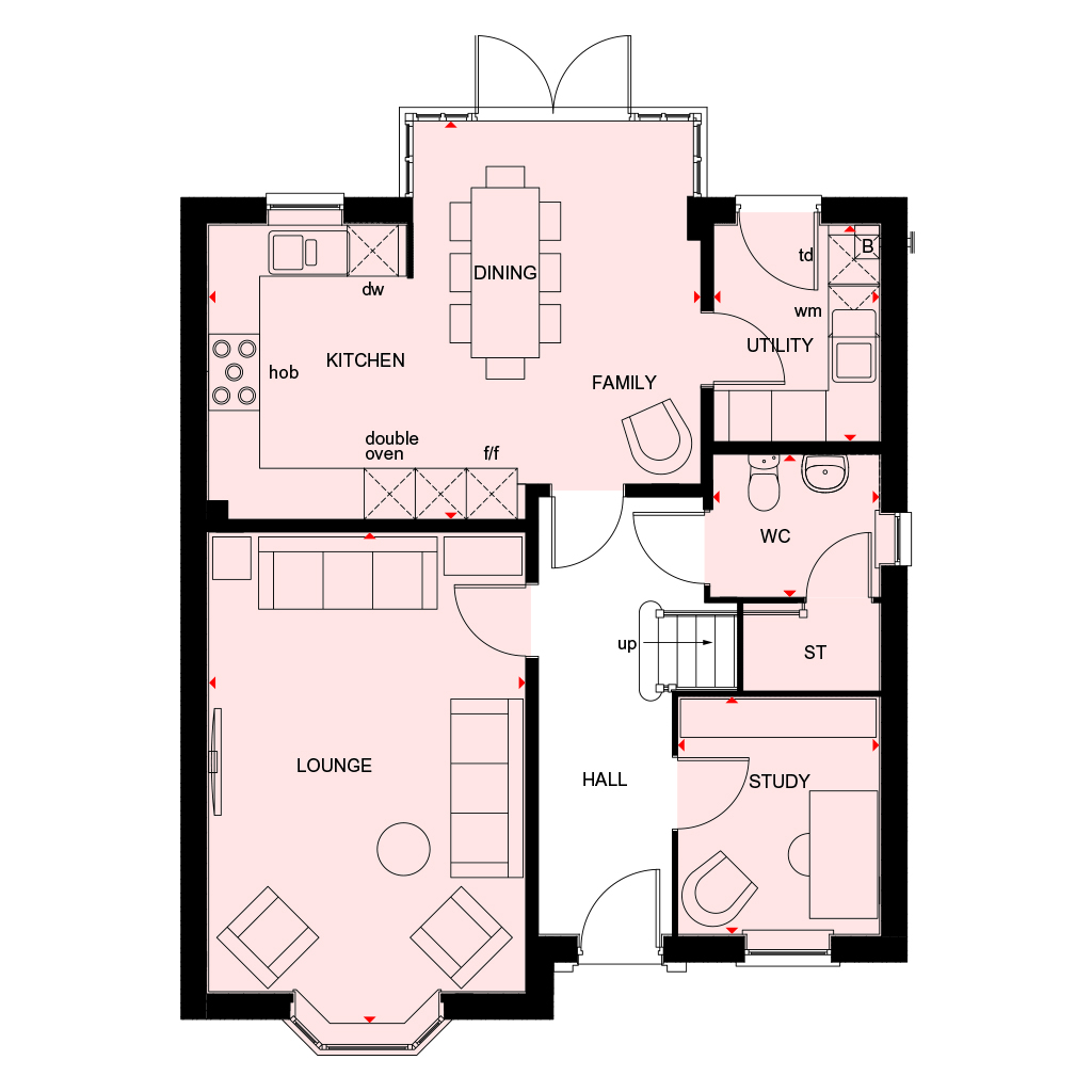 PLOT 491 THE HOLDEN SPECIAL - 24,750 DEPOSIT CONTRIBUTION* - UPGRADED KITCHEN & INTEGRATED APPLIANCES - The Holden`s spacious hallway welcomes you home. At its heart is a stunning open-plan kitchen with walk-in glazed bay and French doors, ideal for gatherings. A utility room, study, and bay-fronted lounge add comfort. Upstairs, 4 bedrooms offer wardrobe space, with an en suite in the main and a family bathroom with bath and shower. *Incentive subject to completion by 26th June 2026.