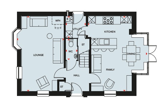 KEY WORKER? SAVE THOUSANDS ON YOUR MOVE. A spacious fourbedroom family home. The ground floor offers an openplan kitchen, dining and family area with a glazed bay and French doors to the garden, plus a utility room, dualaspect lounge, W.C and generous storage. Upstairs features three double bedrooms, including a main bedroom with en suite, a single bedroom and the family bathroom.