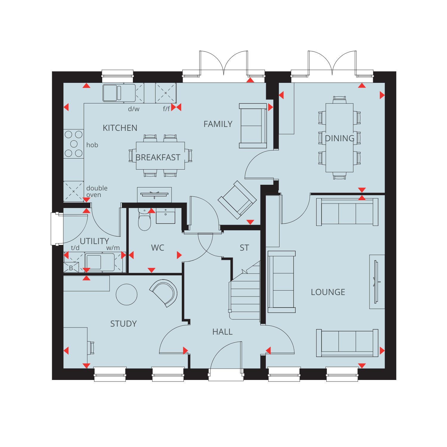 PRIVATE DRIVEWAY OVERLOOKING GREEN OPEN FIELDS | FIVE DOUBLE BEDROOM HOME Downstairs you`ll find a handy HOME OFFICE and a LARGE LOUNGE that leads through to your SEPARATE DINING ROOM and the OPEN-PLAN KITCHEN, with family area and FRENCH DOORS out to your garden. On the first floor you`ll find your LARGE MAIN BEDROOM with its own DRESSING AREA and EN SUITE. A further two DOUBLE BEDROOMS and FAMILY BATHROOM complete this floor. On the top floor there are two further DOUBLE BEDROOMS and a further BATHROOM. This home also has a DOUBLE GARAGE with parking for four cars. Plot 98, The ENERGY-EFFICIENT Buckingham, David Wilson Homes at Stonebridge Fields