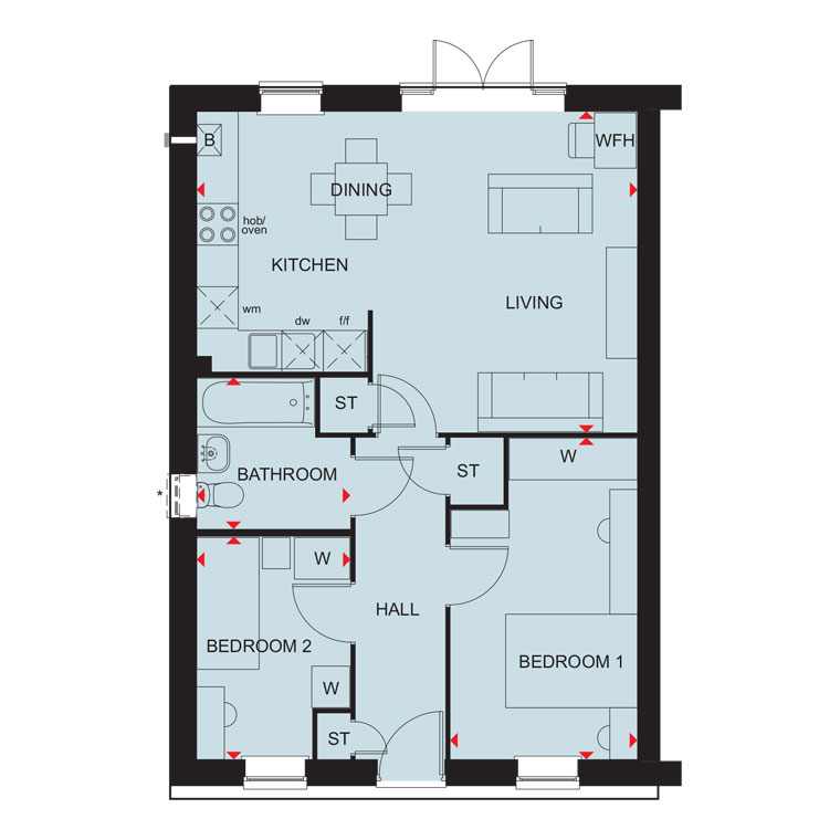 GET A 5% HEAD START WORTH 13,000* plus UPGRADES INCLUDED | Downstairs you`ll find your BAY-FRONTED LOUNGE and your modern KITCHEN-DINER, with French doors out to your garden.