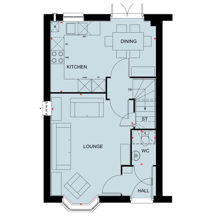 GET A 5% HEAD START WORTH 13,000* plus UPGRADES INCLUDED | Downstairs you`ll find your BAY-FRONTED LOUNGE and your modern KITCHEN-DINER, with French doors out to your garden.