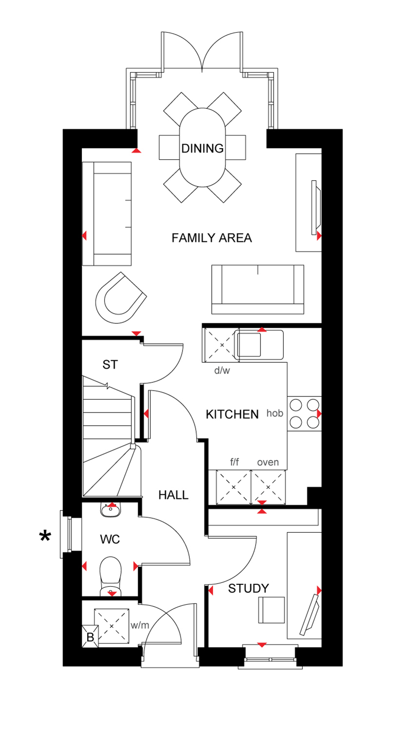 The heart of your new home, the open-plan kitchen/family/dining room, is filled with light through French doors. A utility room and two handy storage cupboards help keep things tidy.
