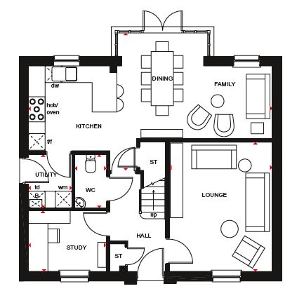 The Craighall offers an open-plan kitchen, dining and family area with French doors to the garden and a handy utility room. A spacious lounge and integral garage complete this home.