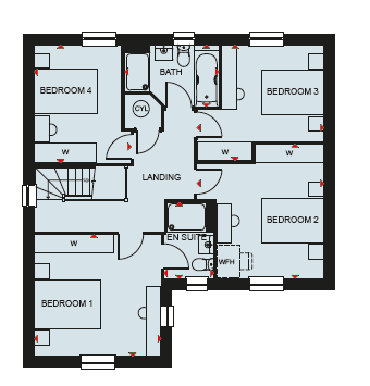 The heart of the home in the 4 bedroom Millford is the bright and spacious open-plan kitchen located to the rear of the property. There is also the family bathroom which offers both bath and shower.