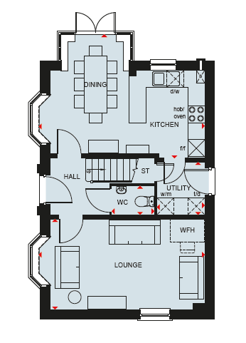 The Hertford - Corner location near green open space and an en suite main bedroom with dressing area. Got a house to sell? Ask us about PART EXCHANGE. Located on a corner, near GREEN OPEN SPACE, the 3-storey Herford features an OPEN-PLAN DINING KITCHEN with FRENCH DOORS leading to the GARDEN. Downstairs, you`ll find a spacious BAY-FRONTED LOUNGE and a HANDY UTILITY ROOM. On the first floor, you`ll find the EN SUITE MAIN BEDROOM with a DRESSING AREA, a FURTHER DOUBLE BEDROOM and a family bathroom. Up the second flight of stairs, you`ll find an ADDITIONAL DOUBLE BEDROOM and an adaptable SINGLE BEDROOM. A shower room completes this floor. Outside, you`ll discover a DETACHED GARAGE with PARKING FOR 3 CARS.