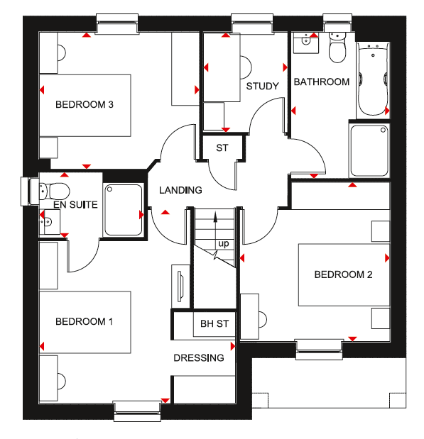 Downstairs you`ll find your modern kitchen-diner with French doors out to your garden, a handy utility room and a spacious lounge. Upstairs there`s plenty of room with three double bedrooms, with the main bedroom featuring its own en suite with a dressing area, a home office and a family bathroom.