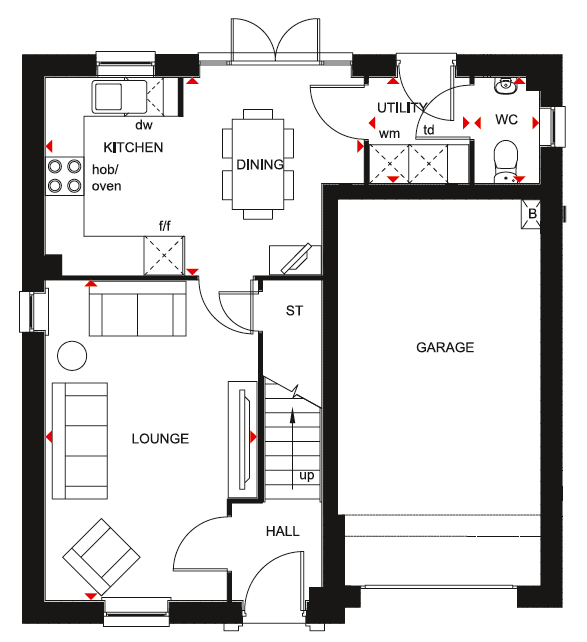 FURNITURE PACK AND LUXUXURY UPGRADES INCLUDED. SEMI-DETACHED home. The hall opens out to a cosy LOUNGE and through to the fully fitted KITCHEN DINER with FRENCH DOORS to the garden.