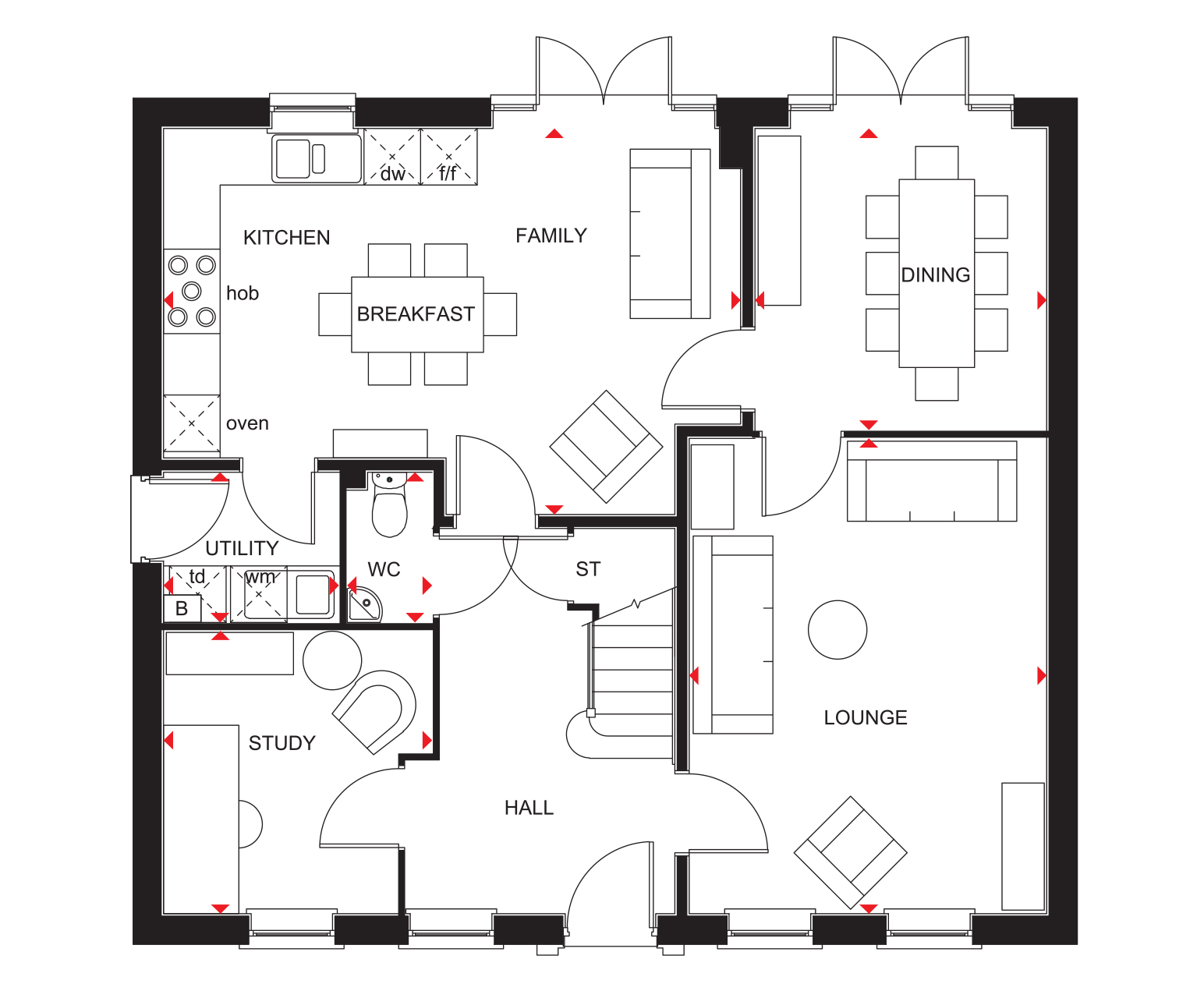 The Manning features a bright and airy kitchen boasting breakfast, family and UTILITY areas and a GLAZED BAY that opens onto the garden. The LOUNGE also features its own set of FRENCH DOORS.