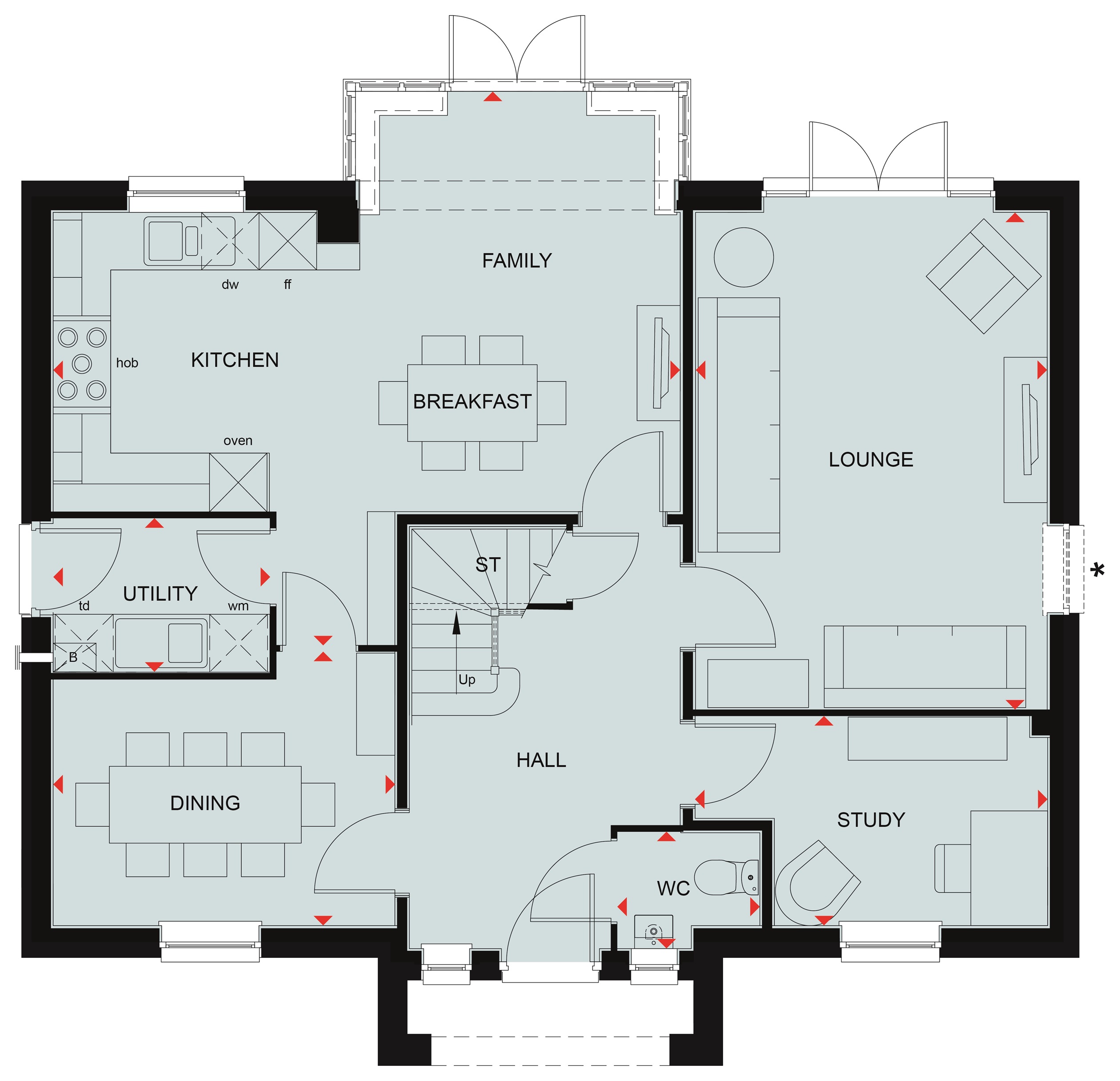 The Holden is a detached four bedroom home. There is also an elegant BAY-FRONTED LOUNGE and a home office.