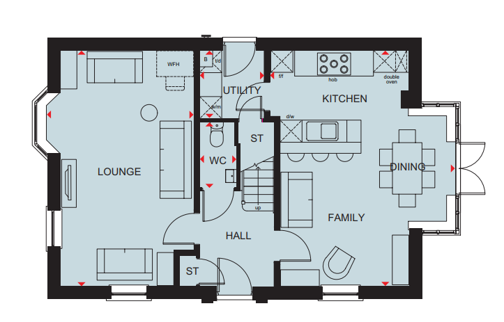 The Holden is a detached four bedroom home. There is also an elegant BAY-FRONTED LOUNGE and a home office.