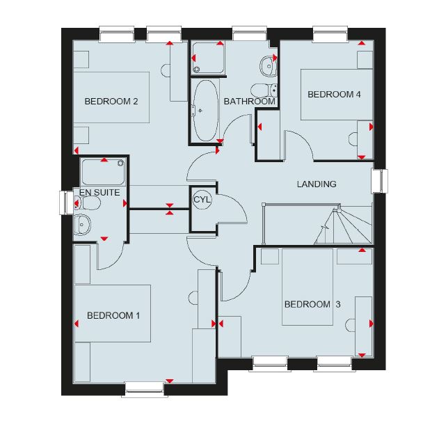 The Holden is a detached four bedroom home. Featuring an OPEN-PLAN KITCHEN that has been designed with integrated dining and family areas with FRENCH DOORS onto the garden and an adjoining UTILITY ROOM. There is also an elegant BAY-FRONTED LOUNGE and a home office. Upstairs, there are fOUR SPACIOUS BEDROOMS, the main bedroom with an EN SUITE, and a FAMILY BATHROOM.