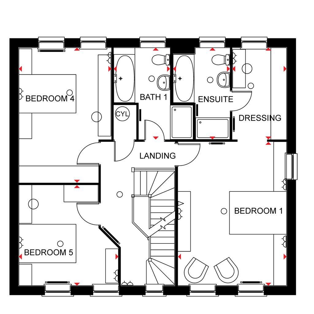 Downstairs you`ll find a handy HOME OFFICE and a LARGE LOUNGE that leads through to your SEPARATE DINING ROOM and the OPEN-PLAN KITCHEN, with family area and FRENCH DOORS out to your garden. On the first floor you`ll find your LARGE MAIN BEDROOM with its own DRESSING AREA and EN SUITE. A further two DOUBLE BEDROOMS and FAMILY BATHROOM complete this floor. On the top floor there are two further DOUBLE BEDROOMS and a further BATHROOM. This home also has a DOUBLE GARAGE with parking for four cars. Plot 265, The ENERGY-EFFICIENT Buckingham, David Wilson Homes at Ashlawn Gardens