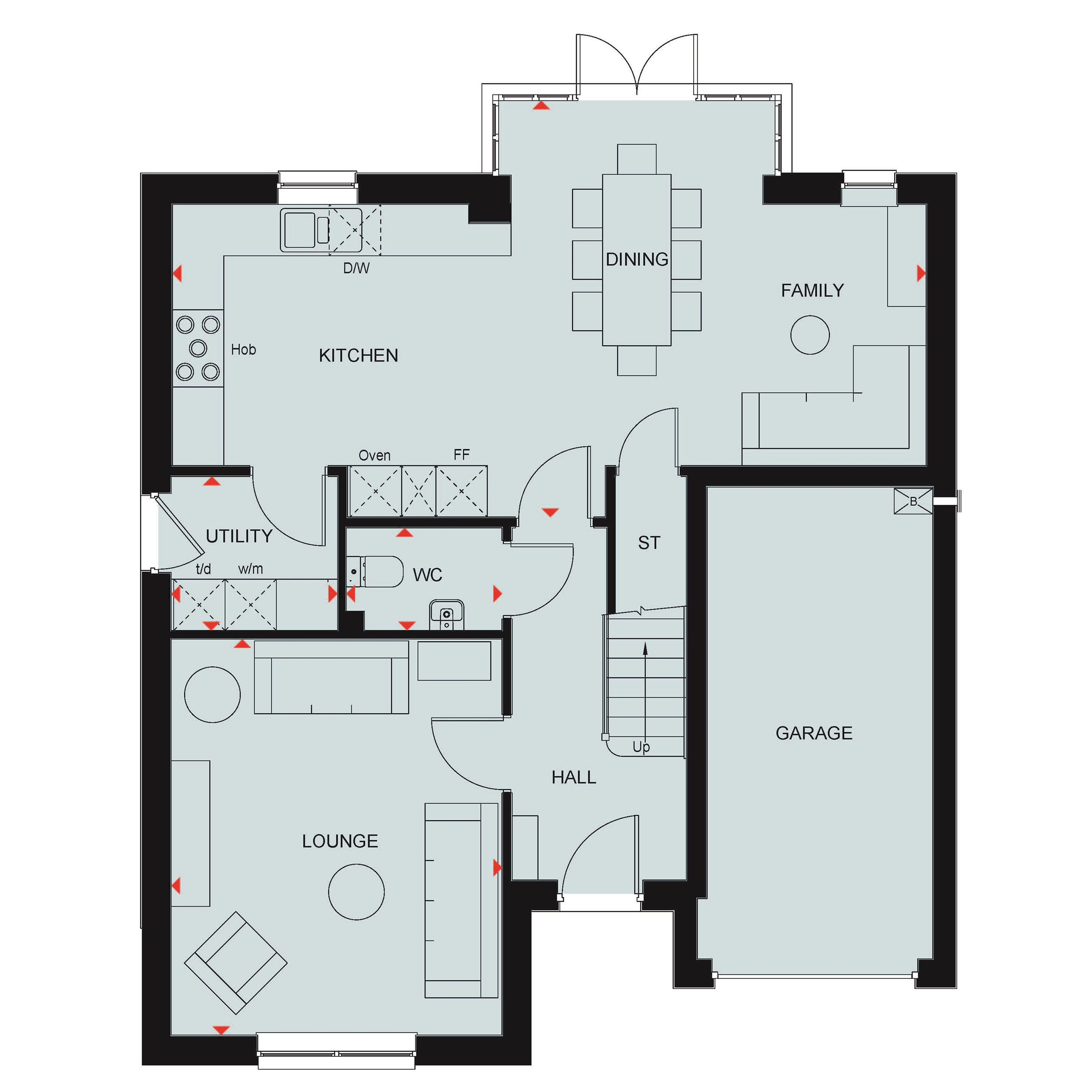 On the ground floor of the Colville, you will find a spacious lounge, dining room, an open-plan kitchen with breakfast bar and family area.