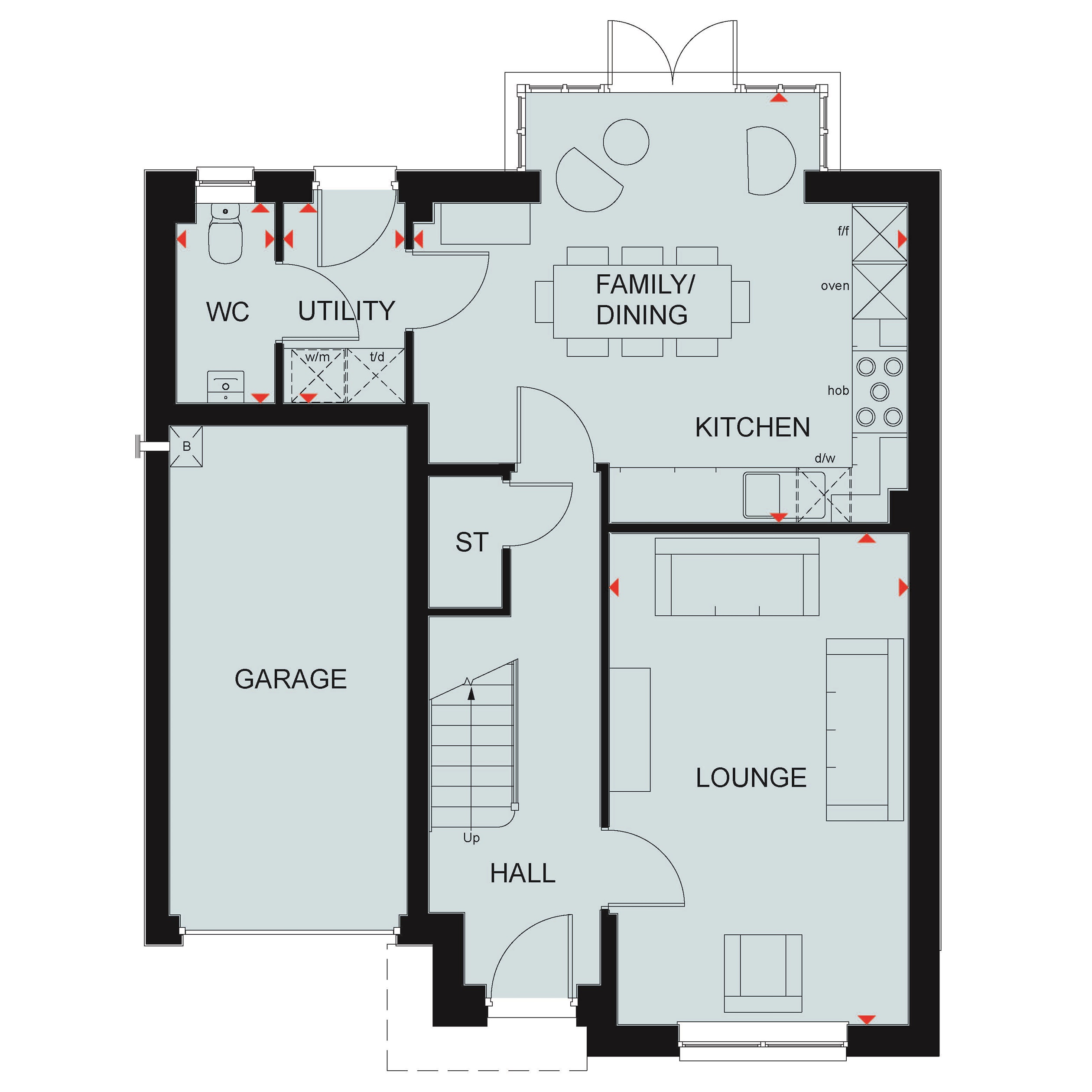 On the ground floor of the Colville, you will find a spacious lounge, dining room, an open-plan kitchen with breakfast bar and family area.