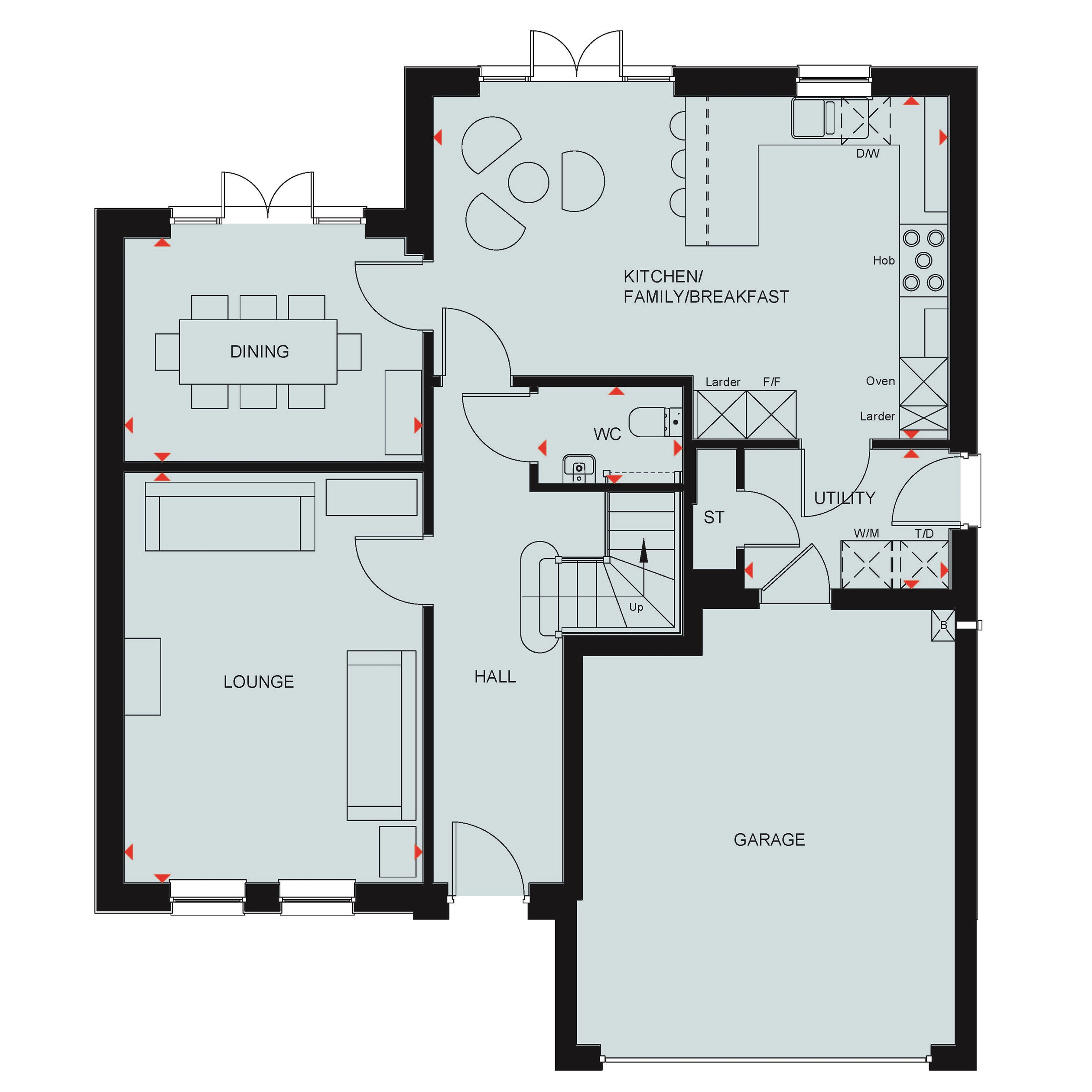 On the ground floor you will find a bright open-plan kitchen/dining/family space with French doors to the garden and a separate utility room. A single integral garage completes The Dalmally.