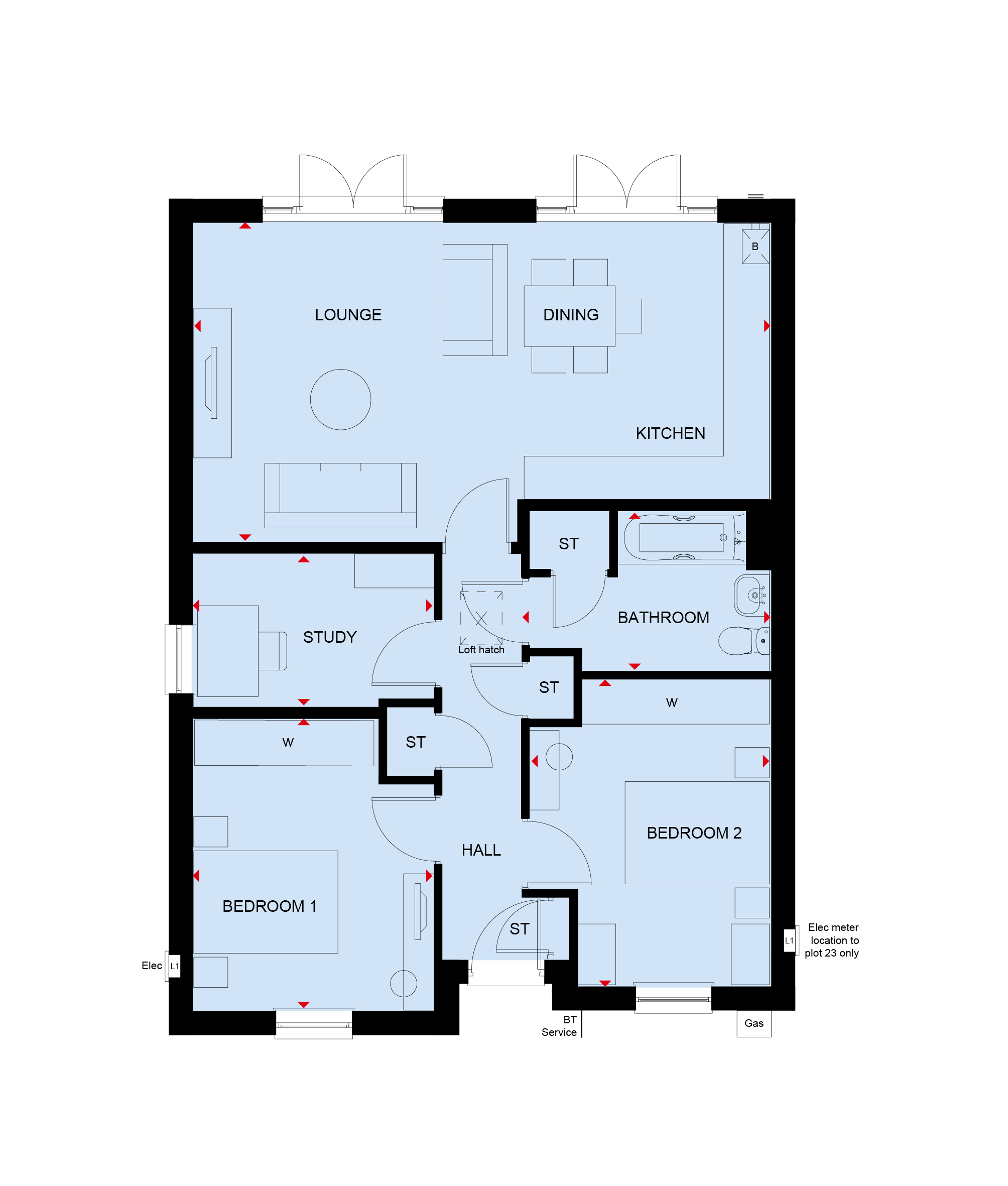 Brand new detached bungalow in a CUL-DE-SAC location OVERLOOKING OPEN SPACE with TWO DOUBLE BEDROOMS and a GARAGE WITH EV CHARGER. Two double bedrooms, a study and a bathroom complete this home.