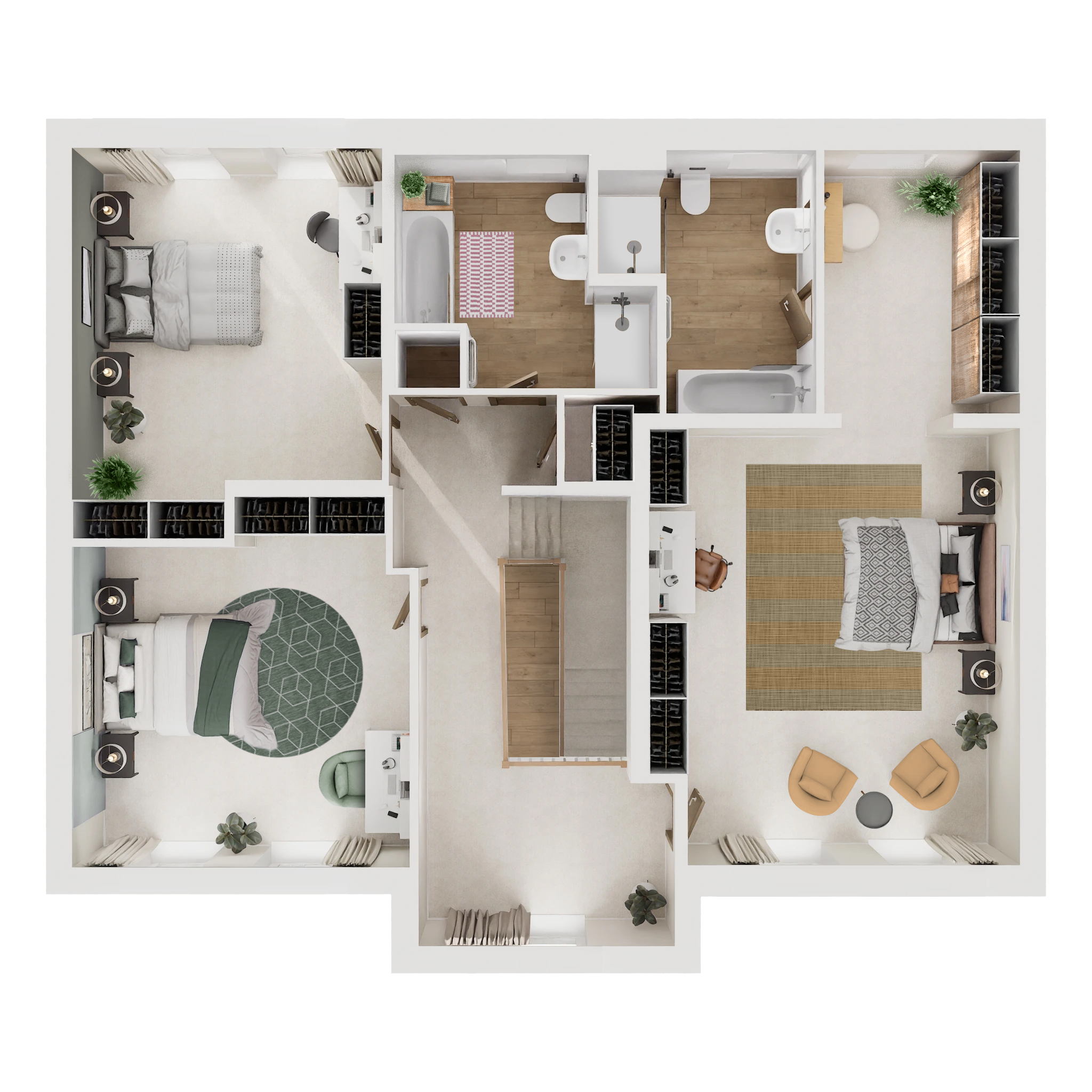 The Lichfield A stunning home located at the END OF A CUL-DE-SAC, with FIVE DOUBLE BEDROOMS and a DETACHED DOUBLE GARAGE. A beautiful DETACHED HOME which features an OPEN-PLAN dining kitchen with FRENCH DOORS to the garden. On the ground floor, there is also a SPACIOUS LOUNGE, SEPARATE DINING ROOM and a HOME OFFICE. Upstairs, you will find THREE DOUBLE BEDROOMS including the impressive main with EN SUITE and DRESSING AREA, and a family bathroom. The second floor comprises TWO FURTHER DOUBLE BEDROOMS and a second bathroom. Outside, you will benefit from a DETACHED DOUBLE GARAGE and driveway. SHOW HOME available to view at this development. Now available with STAMP DUTY CONTRIBUTION (worth 53,750) and FREE FLOORING (worth 16,000). Or, STAMP DUTY CONTRIBUTION when you PART EXCHANGE.
