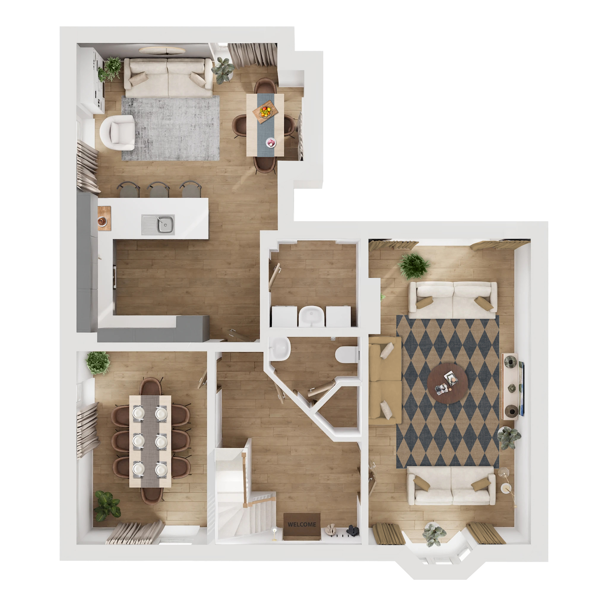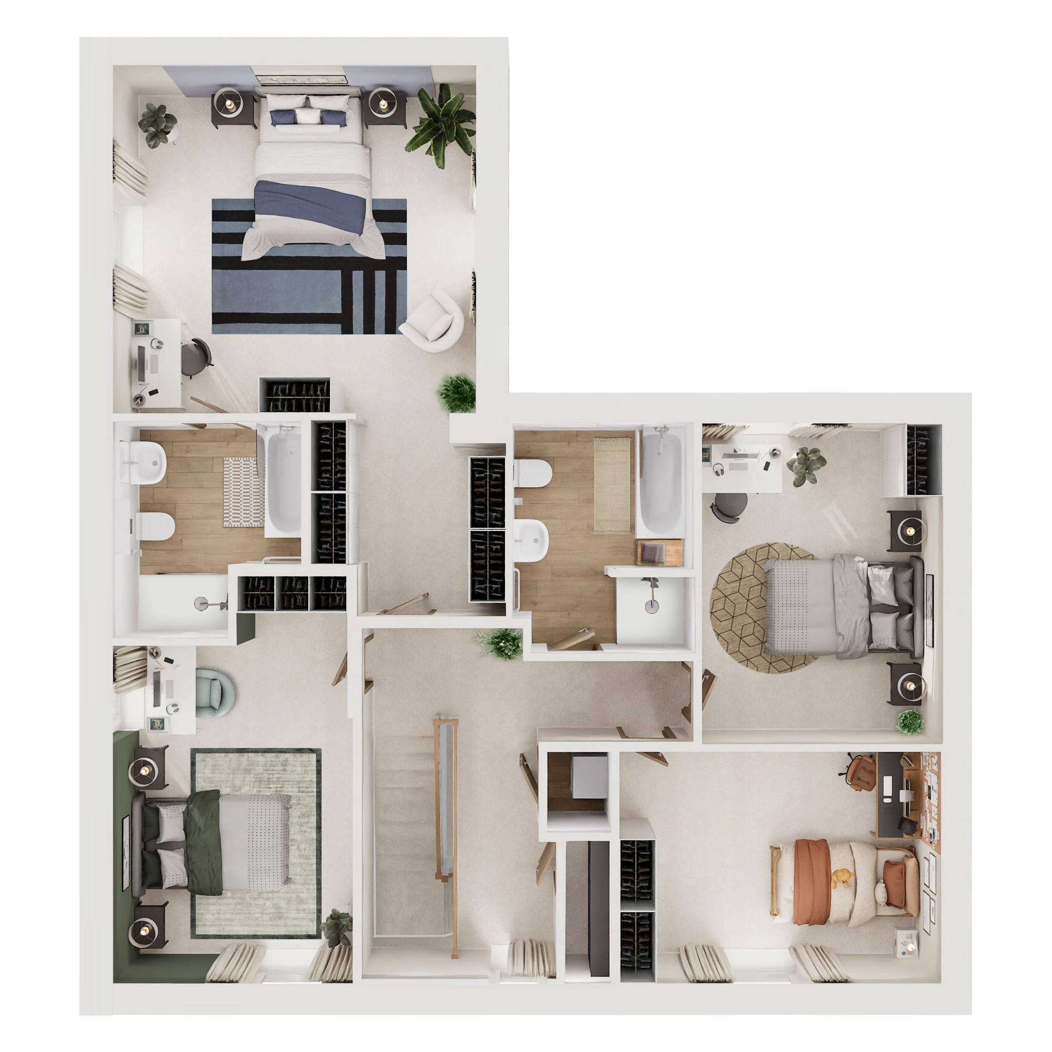 The Lichfield - A stunning home located at the END OF A CUL-DE-SAC, with FIVE DOUBLE BEDROOMS and a DETACHED DOUBLE GARAGE. The second floor comprises TWO FURTHER DOUBLE BEDROOMS and a second bathroom.