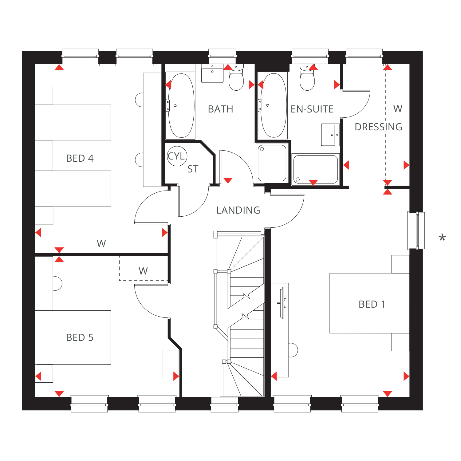 • Five double bedrooms