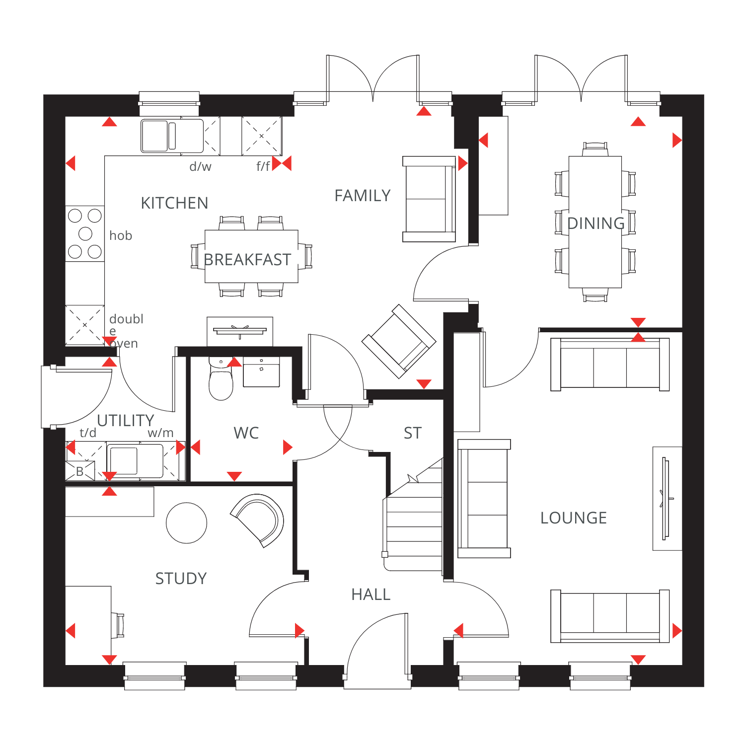 The impressive Evesham features an OPEN-PLAN DINING KITCHEN with FRENCH DOORS to the SOUTH-WEST FACING GARDEN. A DOUBLE GARAGE and DRIVEWAY PARKING FOR 4 CARS completes this home.