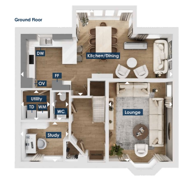 The DETACHED Berney features an OPEN-PLAN DINING KITCHEN with FRENCH DOORS leading to the GARDEN. Downstairs also features a spacious LOUNGE and a utility room.