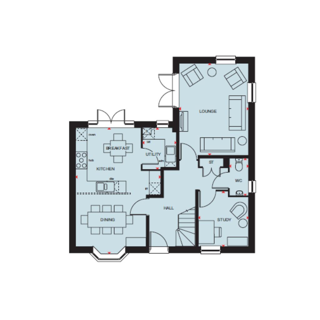 The Wychwood - CORNER LOCATION with a BAY-FRONTED DINING AREA and 2 SETS OF FRENCH DOORS TO THE GARDEN. DEPOSIT CONTRIBUTION worth 26,700. Or, got a house to sell? Ask us about PART EXCHANGE. The Wychwood features an open-plan dining kitchen with French doors leading to the garden. You`ll find a bay-fronted dining area, a separate lounge also with French doors and HOME OFFICE. Upstairs, you`ll find 4 double bedrooms including the main with an EN SUITE. A family bathroom completes this home. Outside, you`ll find a GARAGE and parking for 2 cars.