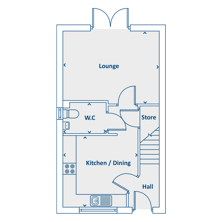 The Hawkridge is a three-bedroom home ideal for first-time buyers, and those looking for more space filled with natural light flowing througout the home. Starting with the open-plan kitchen and dining room, the handy WC and finally the spacious lounge with French doors overlooking the rear garden. Upstairs is a large, modern bathroom, the principle bedroom, a further double bedroom and finishing with a a third bedroom that could be transformed into your home office. Tenure: Freehold. Council tax: Council tax: To be released by the local authority. Estate management fee: 226.84.