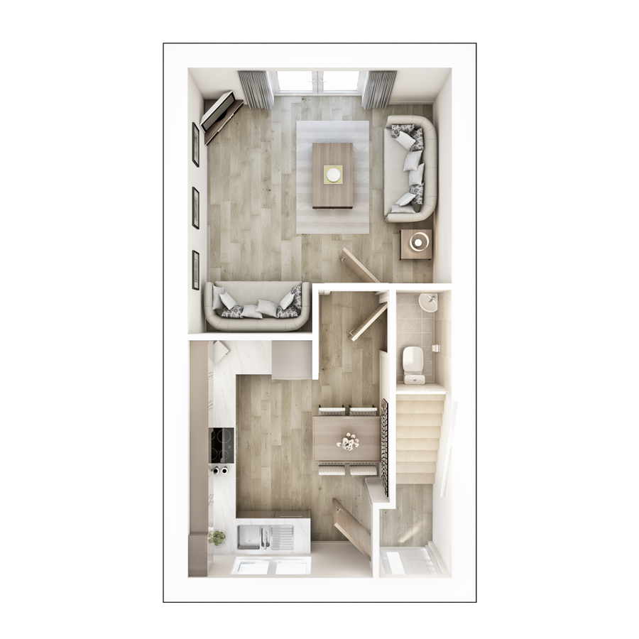 Bigger than your average two-bedroom home, the Foxcote gives you more space for your money.As you enter this home, the hallway leads you into the contemporary kitchen/diner. A great social space, it's a room everyone will love spending time in. To kick back and relax, the spacious lounge is the ideal place. With French doors onto the garden, it's not only light and bright, but when the weather's good, you can open these up to transform this space. A handy WC is downstairs too.Upstairs there are two double bedrooms and a stylish bathroom. The second bedroom is perfect for bunk beds, a guest room, or if you don't need the extra bedroom, a great hobby room.Energy Efficient LivingThis home includes advanced energy-saving features, such as PV panels, advanced insulation, high performance double glazing and a modern, efficient boiler, helping to use up to 65% less energy than an average older property* Tenure: Freehold. Council tax: Determined by your local authority.
