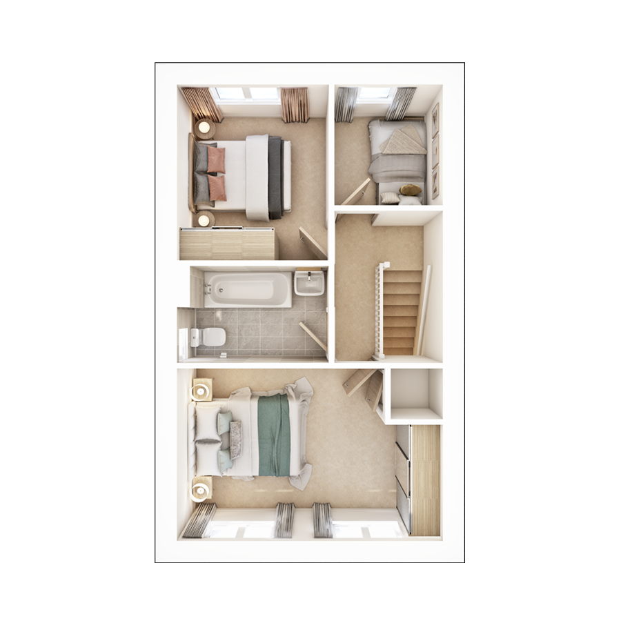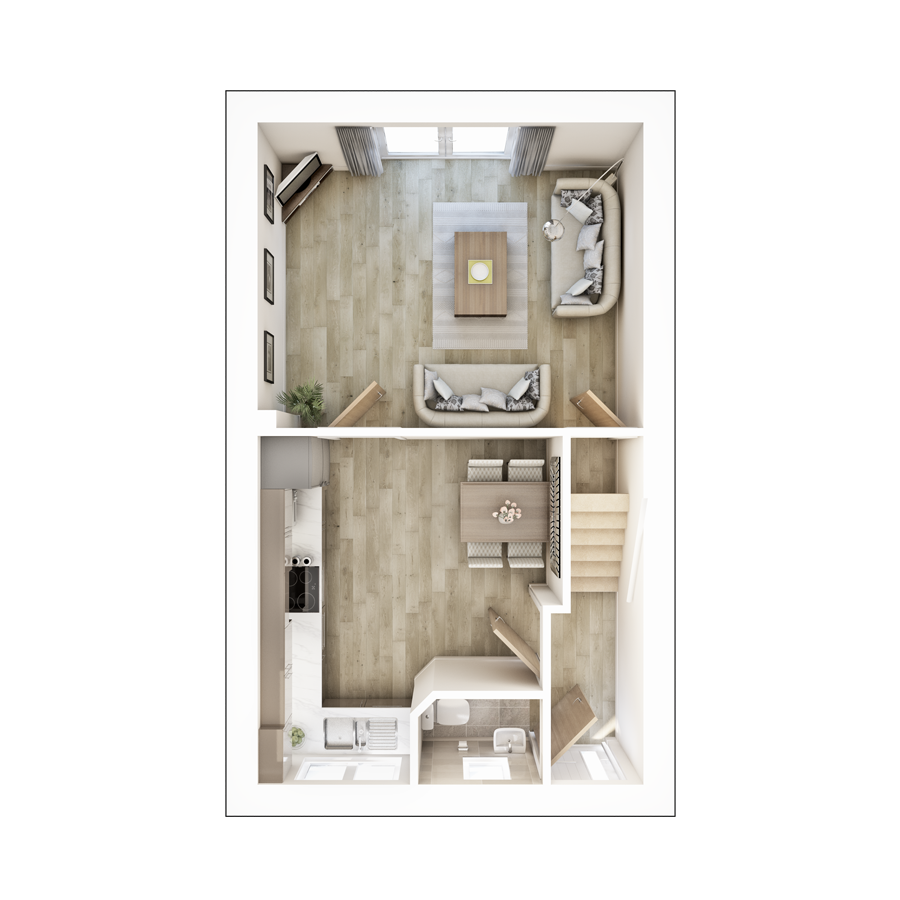 Thanks to the Kentmere, owning your own three-bedroom home is well within your reach.Downstairs, the modern kitchen/diner is the natural heart of the home. The generous lounge overlooks the garden, where French doors not only let the light flood in, but when opened, transform the whole room. Perfect for garden parties and BBQs, they help you connect your inside space with the outside. There's also a handy WC downstairs too.Upstairs, bedroom one features two windows and built-in storage. There's another double bedroom, family-sized bathroom and third bedroom, which would also make a great study, dressing room, nursery or playroom.Energy Efficient LivingThis home includes advanced energy-saving features, such as PV panels, advanced insulation, high performance double glazing and a modern, efficient boiler, helping to use up to 65% less energy than an average older property* Tenure: Freehold. Council tax: Determined by your local authority.