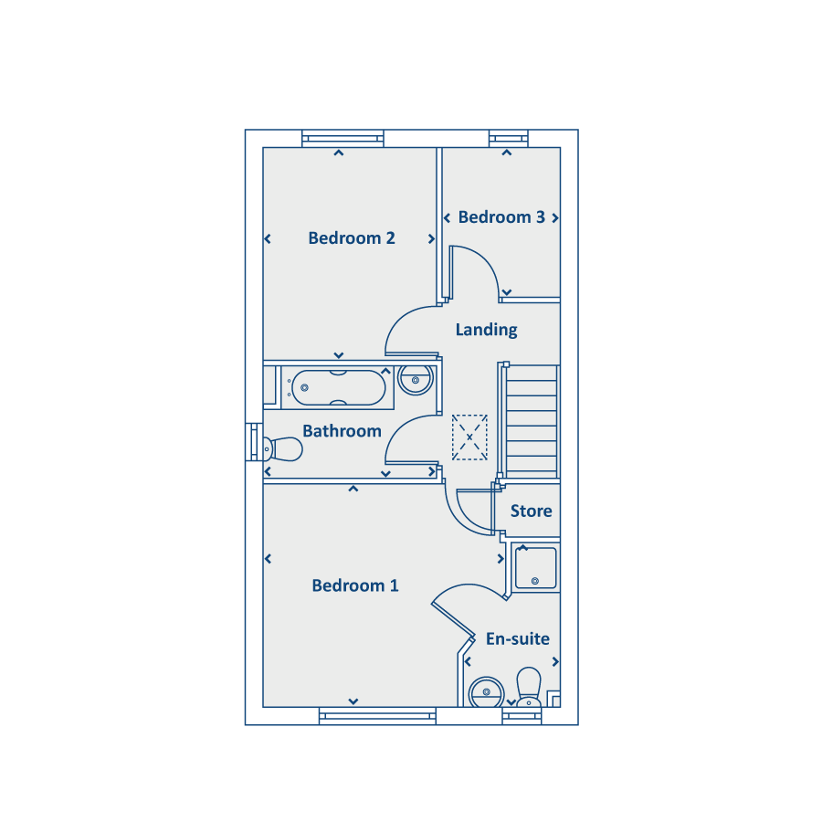 Designed for modern life, The Kielder is a 826.17 sq. ft contemporary three-bedroom home with lots of character. Off the hallway, you'll find the spacious lounge, the perfect place for relaxing. Head towards the rear of the home, past the downstairs WC, and you'll enter the social hub of the home. The stylish and modern kitchen/diner, with French doors leading straight onto the garden, it's an amazing space everyone will love spending quality time in. And for those who cherish their own space, there are three bedrooms upstairs. The master bedroom has an en suite, and the second double bedroom is versatile, with room for bunk beds if you need them. The third bedroom, family bathroom and storage cupboard complete the floor. Tenure: Freehold. Council tax: Determined by your local authority. Estate management fee: 182.75 per annum.