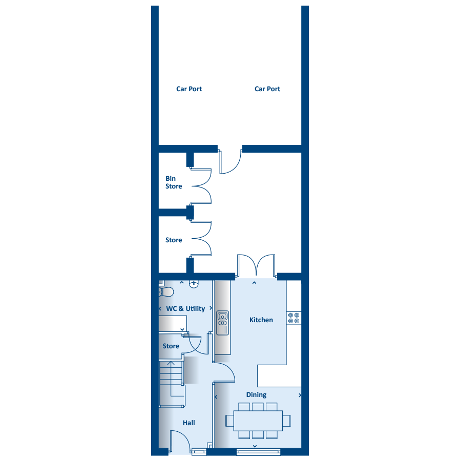 Plot 5 The Melton Mid Terrace is ideal for everyone, from first-time buyers to families. Opposite the hallway, a separate office offers an excellent work-from-home space. A good-sized w.