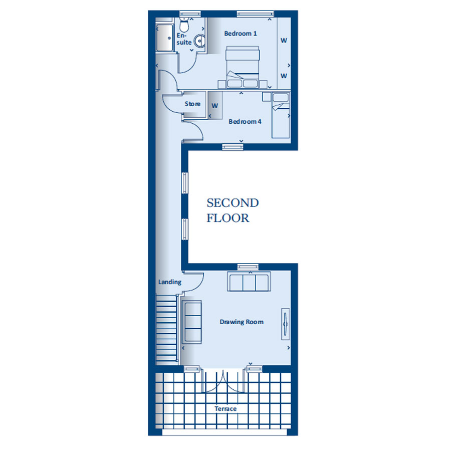 The Seagrave is a truly unique home designed for those who want to enjoy the best of the outdoors. The house wraps around a private atrium flooding the home with light.The groud floor features an open plan kitchen with dining area. A downstairs W.C and storage completes this floor. The first floor houses a spacious lounge overlooking the canal with a separate office area. As well as two double bedrooms, one with an en suite, and modern family bathroom. The second floor consists of a spacious master bedroom with en suite and a single bedroom. This floor features the highlight of this home with a spacious drawing room leading onto your own private terrace over looking the canal.