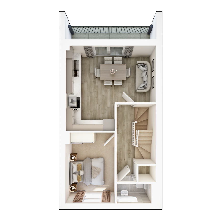 Designed for those who seek style and flexibility, The Regent is a beautifully crafted four-bedroom, three-storey home that balances family life with modern convenience.The first floor features an open-plan kitchen and dining area, the heart of the home, with French doors leading to the terrace for seamless indoor-outdoor living. There's also a versatile fourth bedroom that can double as a home office.On the second floor, the living room has a Juliet balcony overlooking the garden, providing a private sanctuary. This floor also includes a stylish double bedroom and a contemporary bathroom. The top floor is a haven with two further bedrooms sharing a stylish ensuite.The Regent's adaptable layout ensures your home evolves with you, complementing your lifestyle. Located in a desirable neighborhood with easy access to amenities, schools, and transport links, The Regent is perfect for raising a family and living your best life.