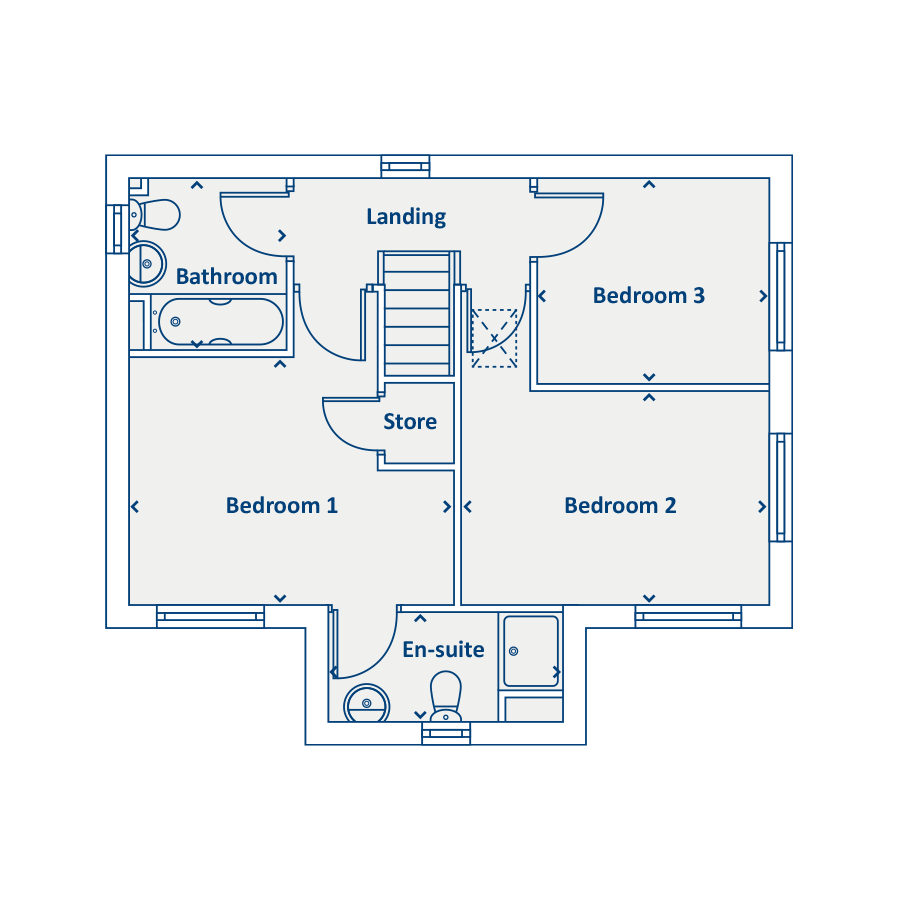 The three-bedroom detached Foxhill is our modern take on a traditional family home.Designed to help you make the most of family life, the Foxhill boasts a generous living room, with space for everyone. The bay window floods the room with light throughout the day and is a great feature in the room. The contemporary kitchen/diner is another family-friendly room everyone will love. With a modern, well-equipped kitchen one end and dining space at the rear, it's amazingly flexible and functional too. Plus with French doors leading to the garden, it's ever so easy to bring the outside in.Upstairs, off the central staircase, there are two double rooms and a good-sized single bedroom. The bedroom one has an en suite shower room. There's a stylish family bathroom too. Tenure: Freehold. Council tax: Determined by your local authority. Estate management fee: Average 221.54 pa, please ask for exact amount.
