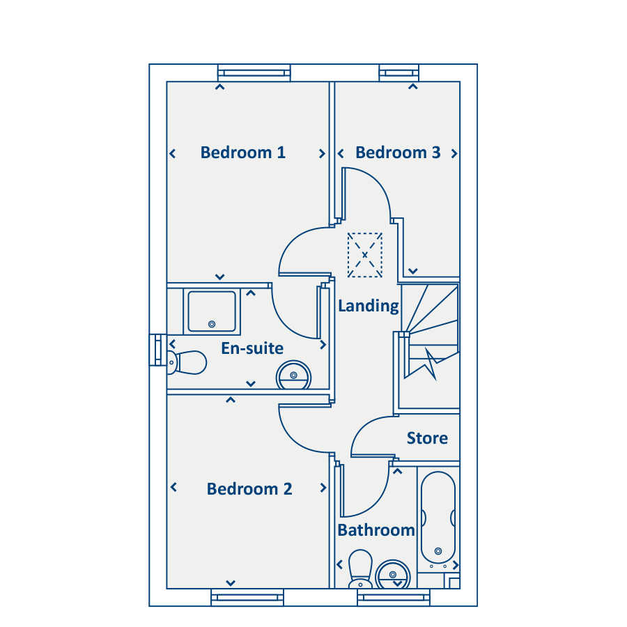 Offering 844 sq. ft. of modern living space, The Coniston is designed with both comfort and convenience in mind. The ground floor features a welcoming lounge with French doors that lead to the rear garden, creating a seamless connection to the outdoors. The open-plan kitchen and dining area is perfect for family meals, while a handy WC and store room are conveniently located just off the entrance.On the first floor, you'll find three spacious bedrooms, including a master with its own en-suite for added luxury. Another store room offers useful additional storage, and a family bathroom completes this well-planned, functional home. Tenure: Freehold. Council tax: To be released by the local authority. Estate management fee: 207.04 pa.