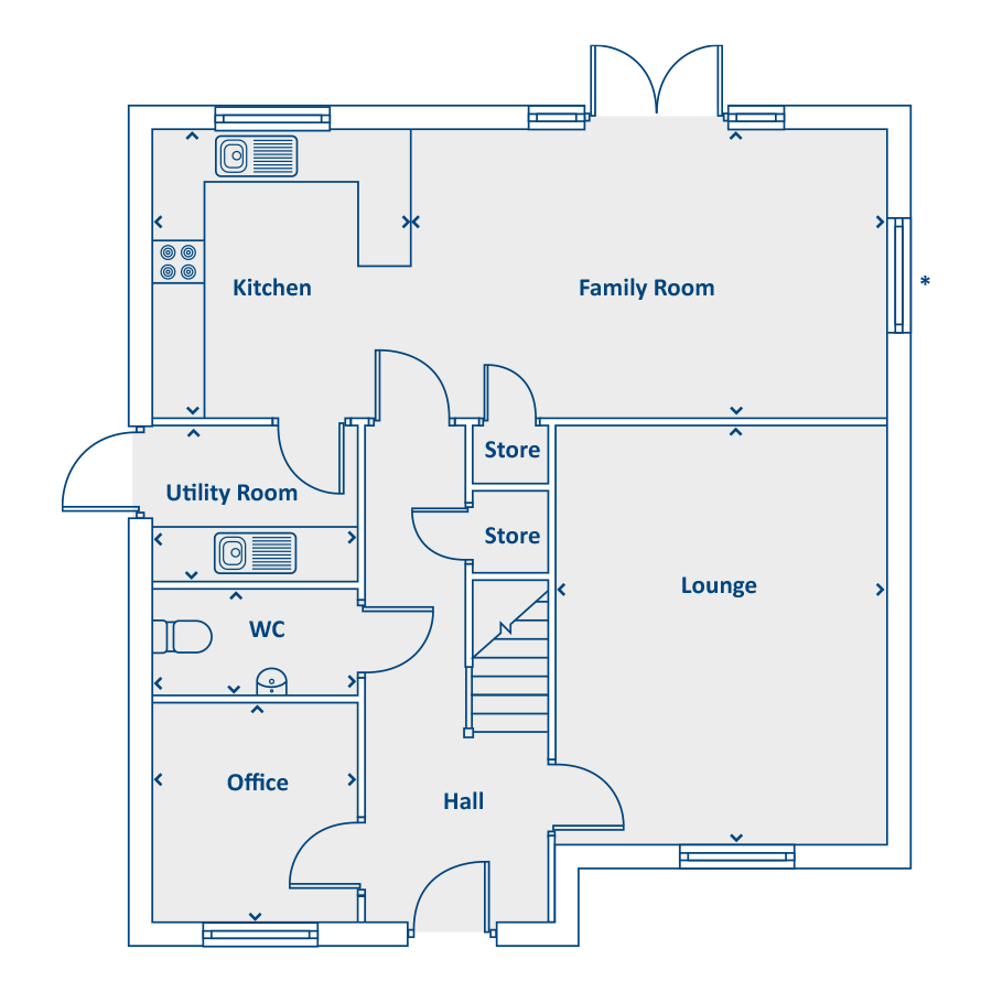 The Hawthorn is a spacious four bedroom detached family home spread over two floors.On the ground floor, there is an open-plan kitchen and family room filled with natural light from the French doors that lead out to the backyard. The kitchen is fully equipped with contemporary appliances and plenty of counter space. Adjacent to the kitchen is a handy utility room to save space.Towards the front of the home is a separate office, ideal for working from home. The ground floor is complete with a formal lounge for entertaining guests, two practical storage rooms and a convenient WC.Upstairs on the first floor are four good-sized bedrooms. The master bedroom has the luxury of an en-suite bathroom, while the remaining three bedrooms share access to a family bathroom. There are another two useful storage rooms upstairs.With its modern open-plan living space, four bedrooms, and versatile room usage, The Hawthorn provides comfortable contemporary family living. Tenure: Freehold. Council tax: To be released by the local authority. Estate management fee: 327.47 per annum.