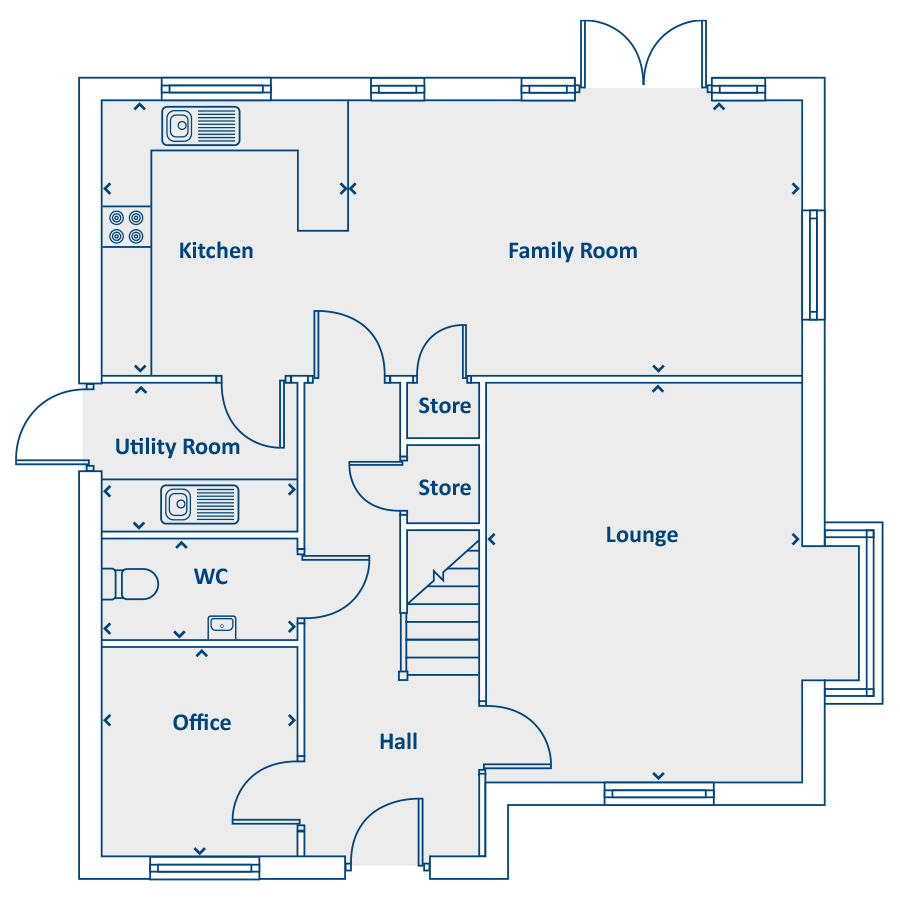 The Oak is an impressive four bedroom detached home where space won't be an issue. The comprehensive design includes a home office, large hallway, lounge with feature bay window, downstairs wc, built in storage and a huge open kitchen family space plus a utility room. Perfect for families. Upstairs you'll find the principal bedroom with en-suite and built-in storage and a further three large bedrooms and family bathroom. Tenure: Freehold. Council tax: Determind by your local authority . Estate management fee: 327.47 per annum.