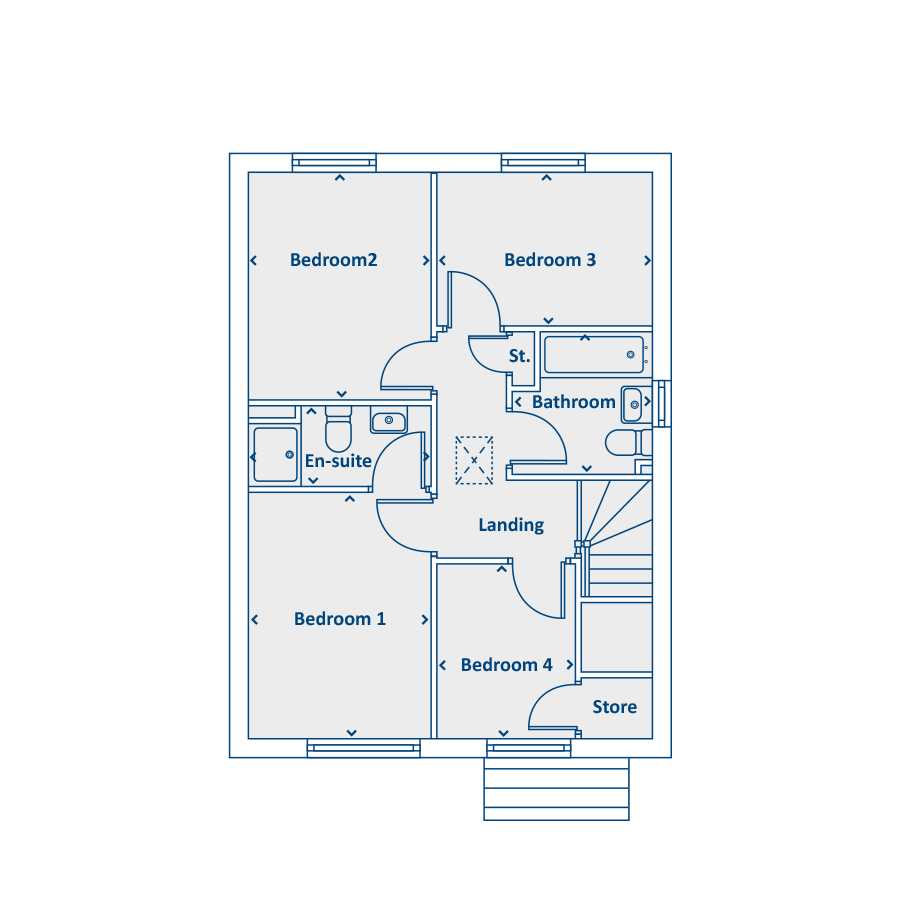 The Hoy is our truly fantastic, modern 4 bedroom home. Offering an ideal open plan kitchen/ dining area at the rear of the home, benefitting from French doors leading out to the garden a perfect space for entertaining.There is a light, airy lounge, a convenient downstairs W.C. any handy storage spaces, completing the floor.Upstairs you'll find the master bedroom with en suite shower room, 2 further double bedrooms and an ideal single fourth bedroom with storage. Upstairs benefits from a stylish family bathroom and storage in the hallway. Tenure: Freehold. Council tax: Determined by local authority. Estate management fee: 178.11 PA and 50 Factor fee float.
