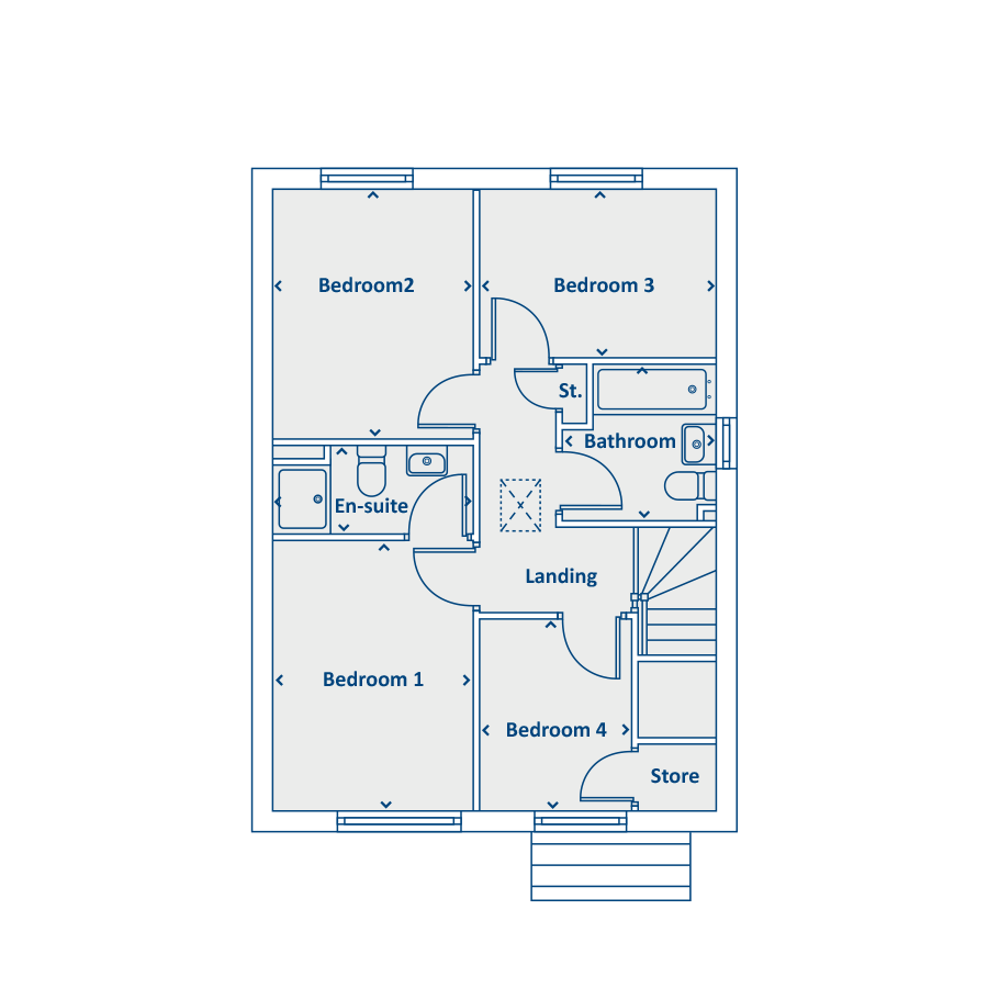The Hoy is our truly fantastic, modern 4 bedroom home. Offering an ideal open plan kitchen/ dining area at the rear of the home, benefitting from French doors leading out to the garden a perfect space for entertaining.There is a light, airy lounge, a convenient downstairs W.C. any handy storage spaces, completing the floor.Upstairs you'll find the master bedroom with en suite shower room, 2 further double bedrooms and an ideal single fourth bedroom with storage. Upstairs benefits from a stylish family bathroom and storage in the hallway. Tenure: Freehold. Council tax: Determined by local authority. Estate management fee: 178.11 PA and 50 Factor fee float.
