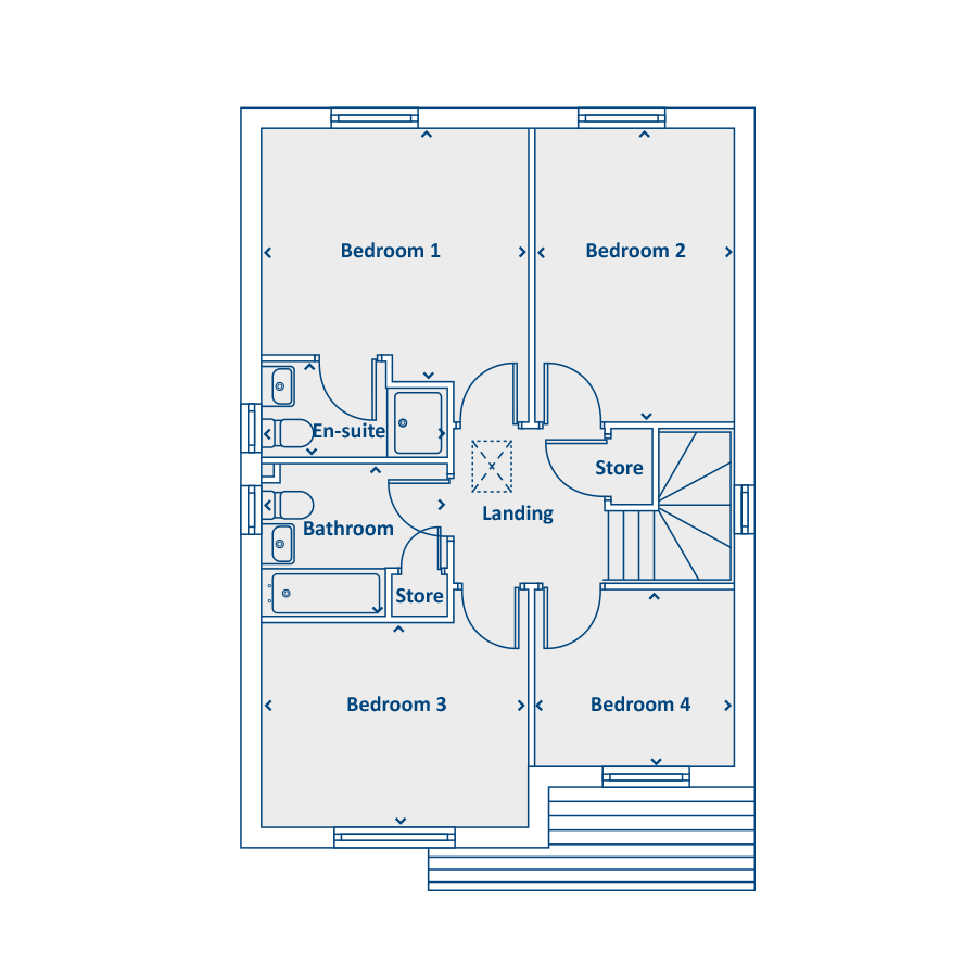 The Arran is a spacious and well planned out four bedroom home. It offers luxurious family accommodation at an affordable price tag.The ground floor boasts a modern kitchen, a living room with french doors, providing a light and airy space perfect for entertaining, whilst the rest of the ground floor consists of a contemporary dining room and a convenient downstairs w.c.The upstairs features a superb master bedroom with an en-suite bathroom, two further double bedrooms, a single bedroom and a family bathroom to complete the floor. Tenure: Freehold. Council tax: Determined by local authority. Estate management fee: 178.11 PA and 50 Factor fee float.