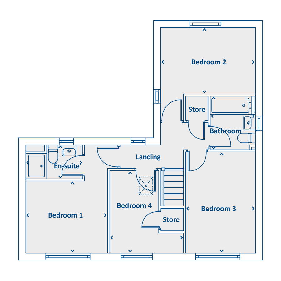 The stunning L-shaped Newham four-bedroom home has been carefully designed to create a home that's light, bright and spacious. One of the key benefits of an L-shaped home is that thanks to the extra windows, every room is flooded with natural light.From the expansive entrance hall, the spacious living room is on your left and the dining room and WC are on your right. Head towards the back of the home and there's an airy kitchen with French doors that open out onto the garden and space for a breakfast table. Upstairs there are four bedrooms. Three are double rooms and the master bedroom has a stylish en-suite. There's also a family bathroom and plenty of handy built-in storage.Advanced Energy Efficient HomeThis home includes advanced energy-saving features, such as PV panels, advanced insulation, high performance double glazing and a modern, efficient boiler, helping to use up to 65% less energy than an average older property* Tenure: Freehold. Council tax: Determined by your local authority . Estate management fee: 129.65 per annum.