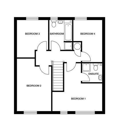 Upstairs the landing leads to the modern family bathroom including separate shower cubicle, the main bedroom with en suite and three other sizeable bedrooms. All four bedrooms have sought-after space for fitted or freestanding wardrobes.