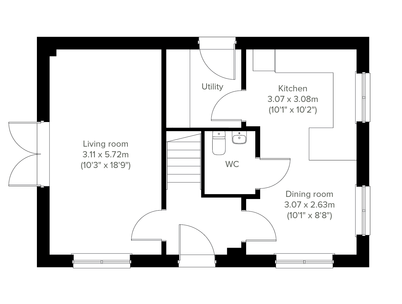 The Bengairn is a superb three-bedroom detached home offering great value for money. Theres a utility room, downstairs WC and en suite bedroom included in the layout. The large kitchen/dining room lends itself to family meals as well as entertaining friends, plus theres a lounge with French doors opening to the garden.