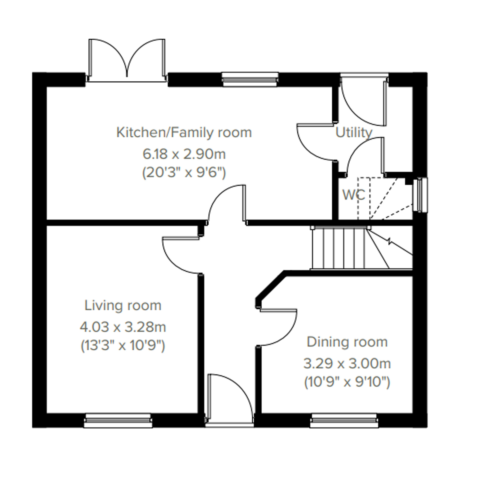 The Chedworth ticks all the boxes for a family home. The modern and stylish open-plan kitchen/family room is perfect for spending time as a family and for entertaining. Theres also a well-proportioned living room, separate dining room, downstairs WC and handy utility room with outside access. Upstairs there are four bedrooms - bedroom one with it`s own en suite - a large family-sized bathroom and another storage cupboard.