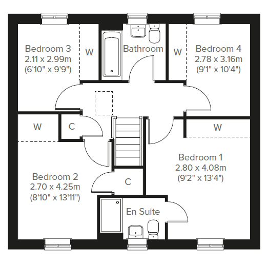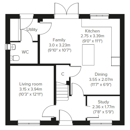 Family life works really well in this easy-to-live-in detached four-bedroom new home. The Brampton has the flexibility of open-plan space as well as separate private space. The main living area, with kitchen, dining and relaxed family zones, is at the heart of this home, while the living room and study give you all the opportunity to take a break and have some quiet time when you need it.