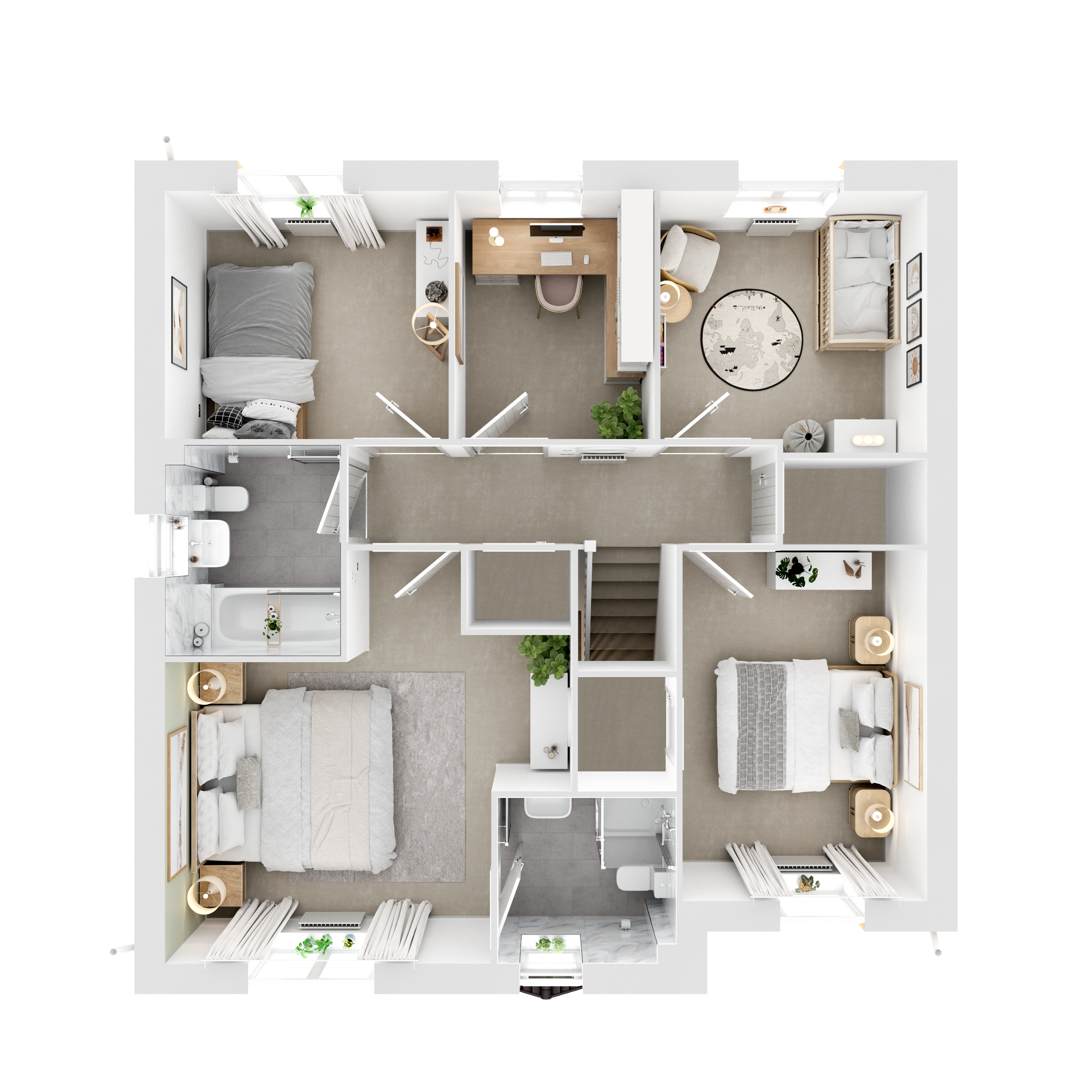 The Morar has style and convenience in abundance. Its open plan kitchen/family room is perfect for time together and entertaining friends, complemented by a spacious lounge, separate dining room, downstairs WC and utility room. Upstairs, youll find four bedrooms, including an en suite bedroom, plus a generous family bathroom, handy storage and flexible study.