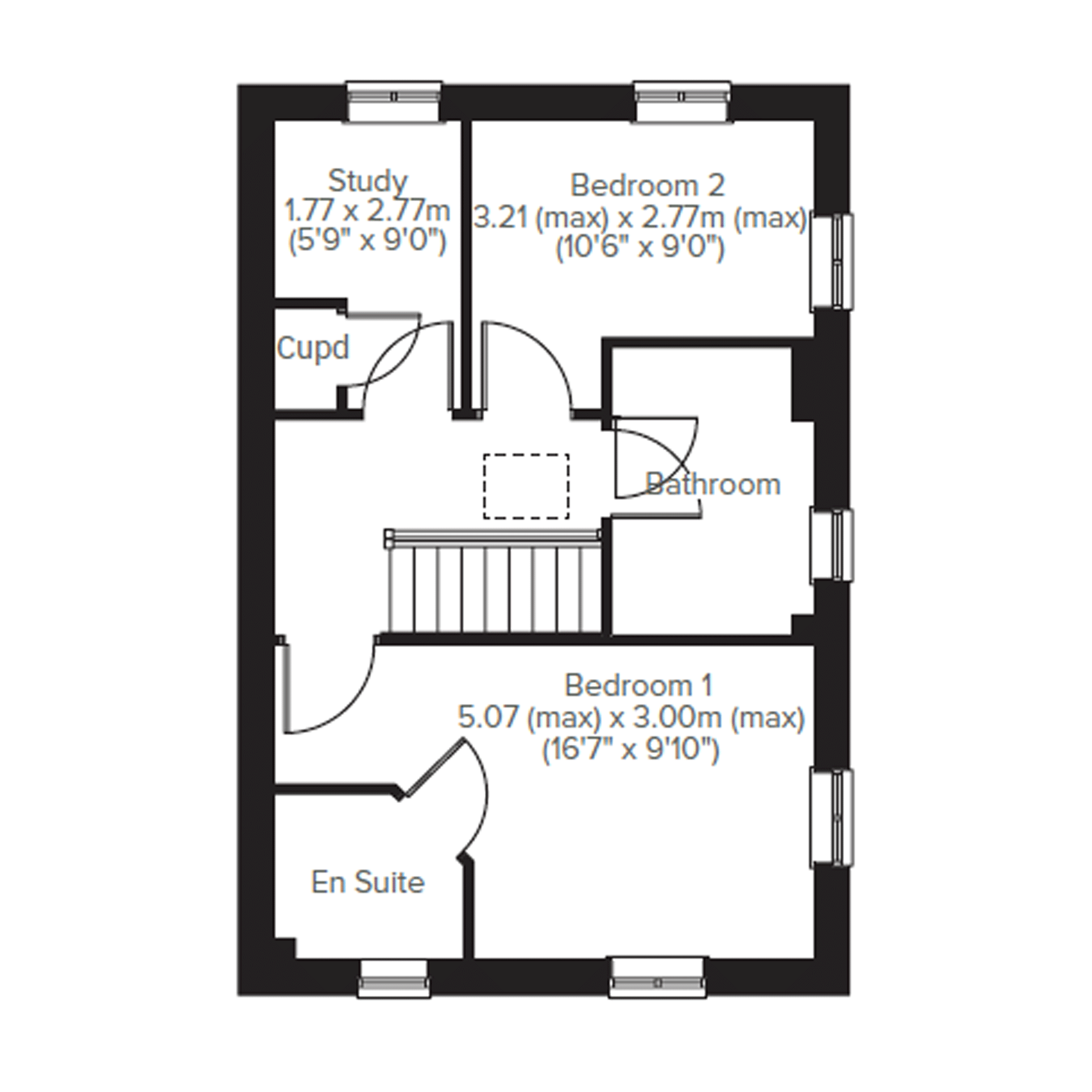 The Deepdale has a lovely balanced feel, created by a central entrance hall and generous living space to either side. Its much the same upstairs, with bedroom one to one side of the landing, and bedroom two and a study on the other side.