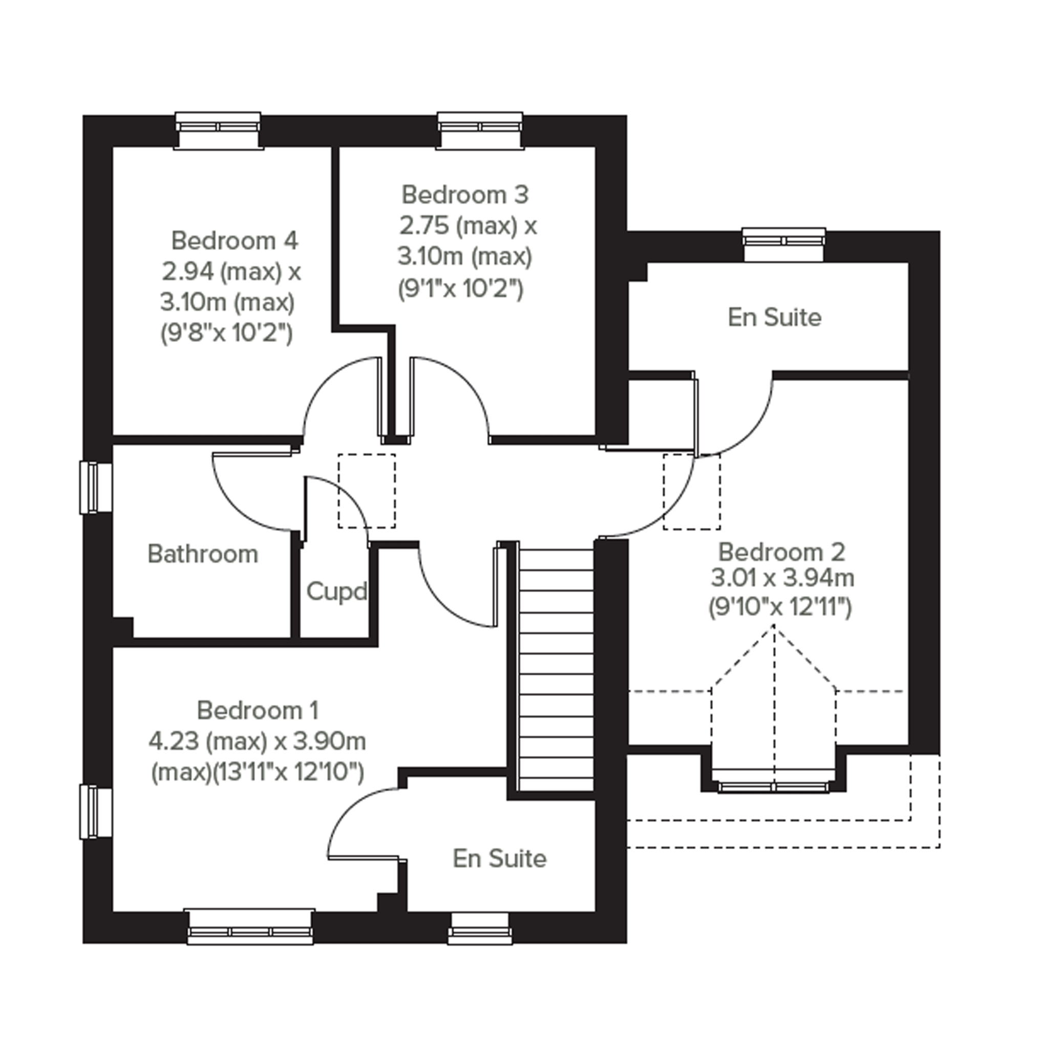 The drive-through space on the ground floor of the Galloway DT, allows for space for a fourth bedroom above it. This is a family home plus. The extra space, with its ensuite facilities, along with two further bathrooms, makes this new home a wonderful choice for family life, for friends and relatives coming to stay, or for working from home.