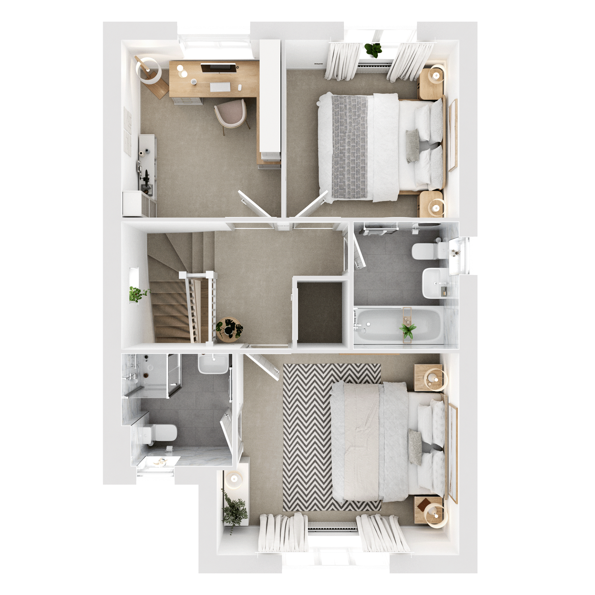 Enjoy the best of modern living in this popular three-bedroom home which benefits from a stylish open-plan kitchen/diner with French doors leading into the garden. The Hatfield`s bright front-aspect living room, separate utility room, handy storage cupboard and downstairs WC complete the ground floor. Upstairs, bedroom one has an en suite and there`s a good-sized family bathroom and further storage.