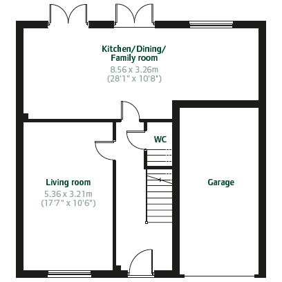 The Taunton is a spacious five-bedroom family home with an integral garage, designed for modern living. The light-filled open-plan kitchen/dining/family room opens onto the garden through two sets of French doors, while a separate living room offers a calm retreat. Upstairs, bedroom one features an en suite, and the other bedrooms share a family bathroom. A convenient ground floor cloakroom completes this spectacular home.